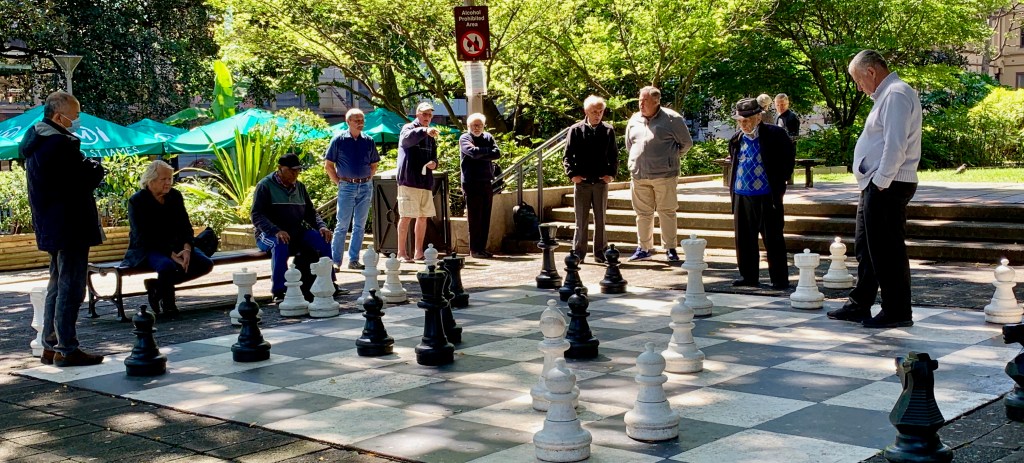 moving on, it was a gorgeous spring day in the park. i stood for half an hour watching a group of eastern european men playing chess.