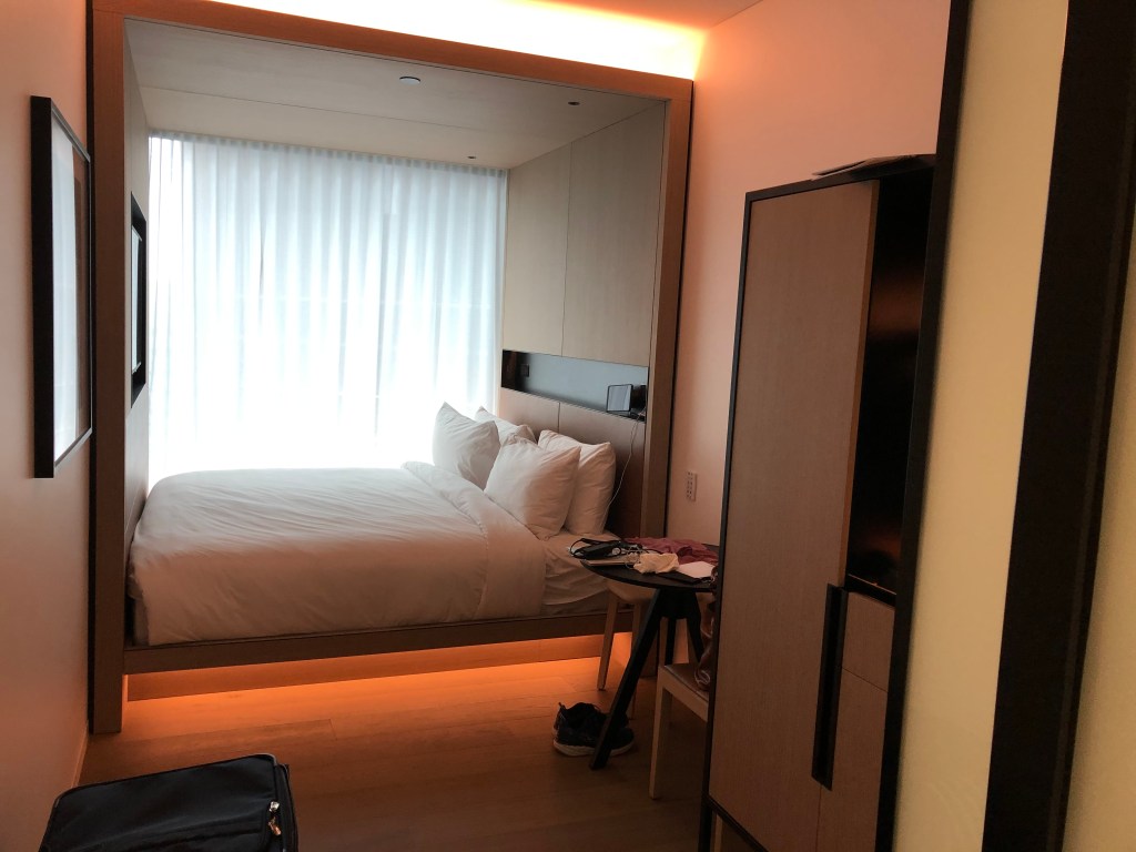 most rooms are only about six feet (under two meters) wide, with a queen-sized bed up against the far wall, accessible from only one side. not great for two, but ideal for business people looking for an upscale, downtown crash site a short walk from a great restaurant and bar scene designed around an inviting waterfront promenade.