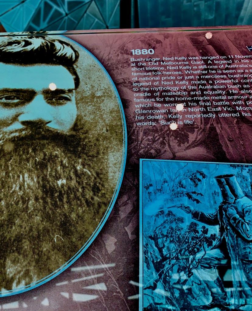 federation square is among melbourne’s favorite meeting places, drawing more than 10 million visitors a year (pre-covid) with its family-friendly events and fantastic, free museums, so i popped into the national gallery of victoria and spent a chunk of the afternoon catching up on local lore. two of my faves were the legendary bad-guy hero ned kelly, australia’s billy the kid, who was hanged at melbourne gaol (jail) in 1880; and the story of “waltzing matilda”, the unofficial national anthem. (would you recognize the official one?)
