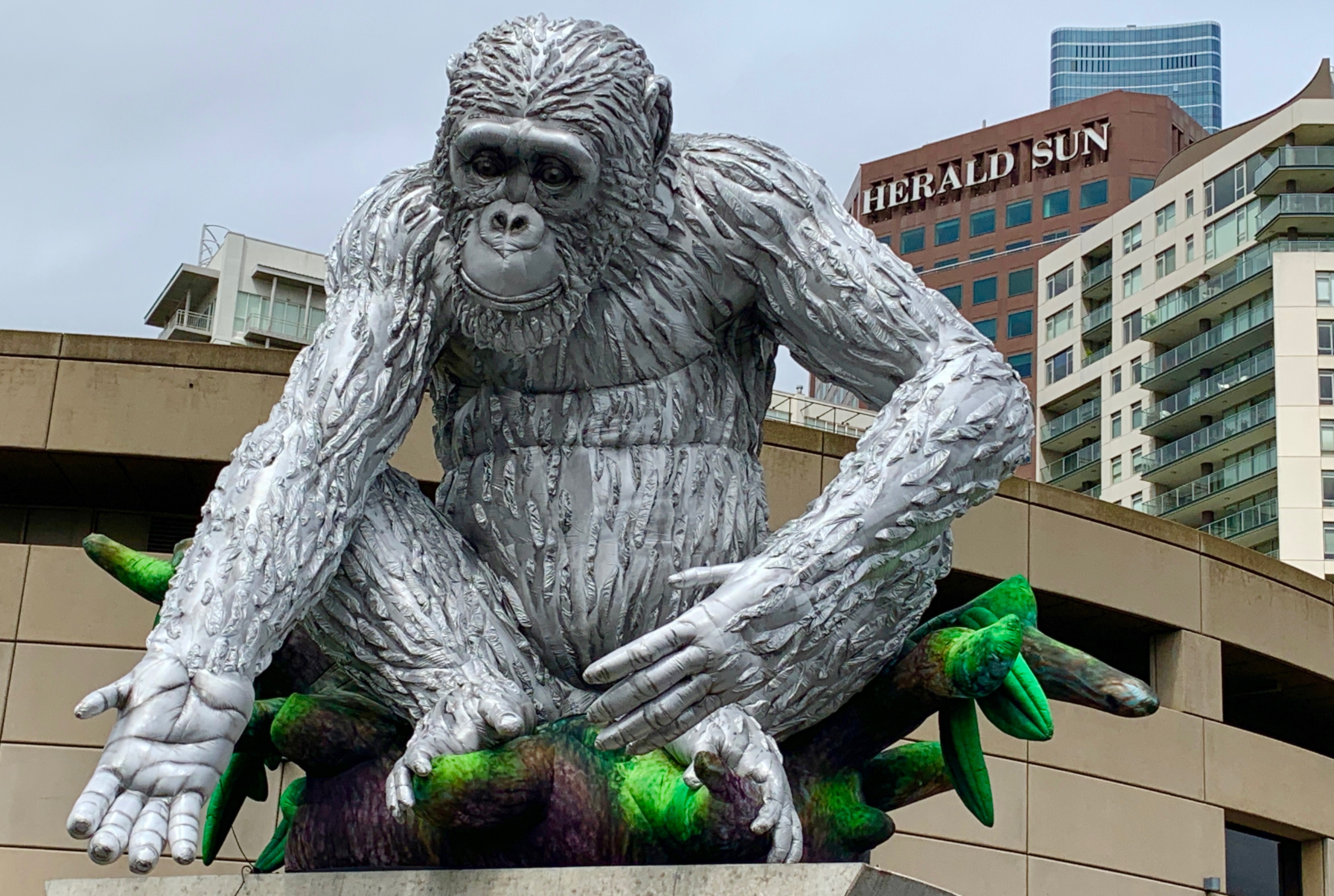 that should have been enough for a mad dash through this great metropolis and financial center. this piece is already too long for a blog post (sorry, mom), but on the way home i’m accosted by an oversized silver chimpanzee. my camera pulls itself out of my pocket.