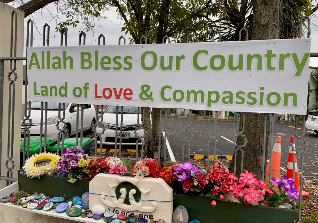 the only outward sign that this was the site of the country’s most heinous crime is a banner hung along the front fence, over a shelf filled with flowers and painted rocks. inside the gate stands a modest stone of remembrance, unveiled by prime minister jacinda ardern, who earned plaudits for rallying the country in its time of grief.