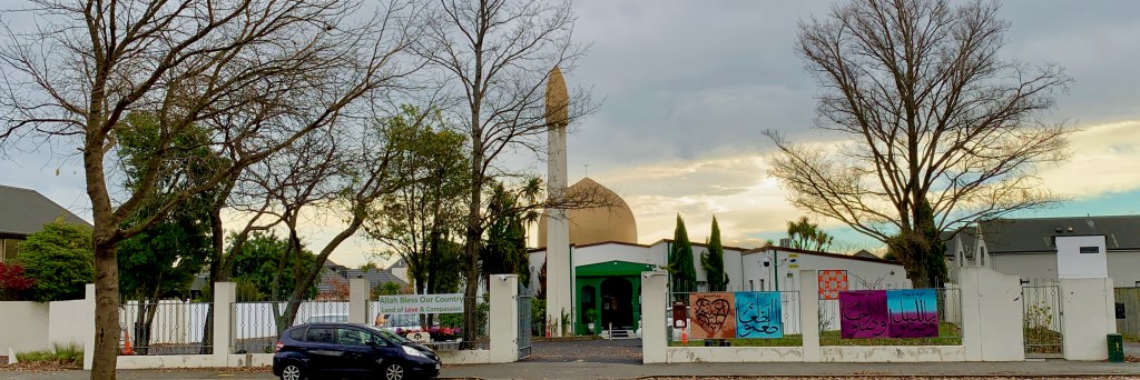 the canterbury islamic center sits on a broad suburban street directly across the city’s main park from the earthquake memorial. the cast iron entry gate to the al-noor mosque stands welcomingly wide open.
