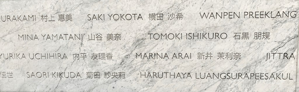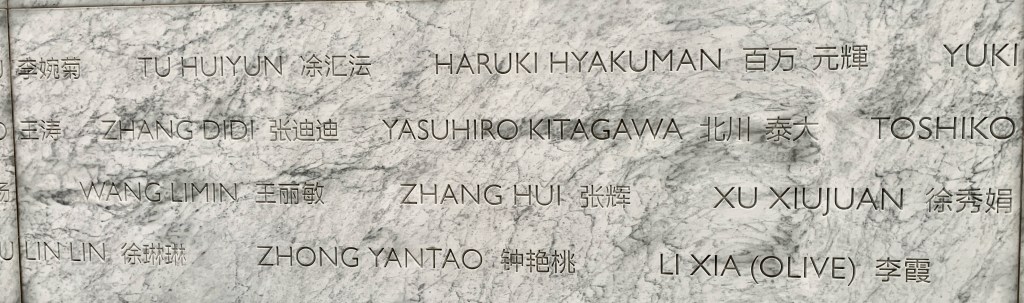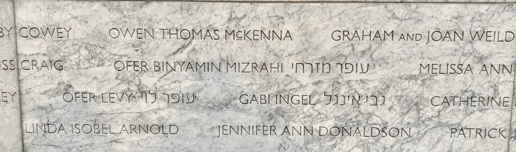 the riverside memorial wall bears the name of each victim etched in marble. it is a curious list. all names are written in latin letters, but many also in a foreign script. and rather than alphabetical order, the names of victims are grouped together with those they knew and loved.