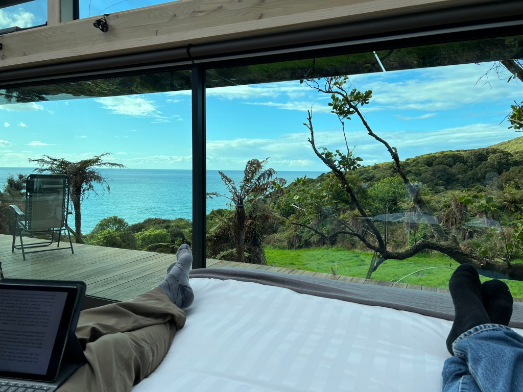 full disclosure: we didn’t see a single kiwi (bird) in three nights at the tokoeka pure pod. we tried. but frankly, we fell asleep as soon as we settled in, (we were exhausted and the beds were awfully comfy) and each time we’d get up in the middle of the night to “take care of business”, there were no kiwis to be seen. therefore our conclusion: kiwis were on holiday. but anyway…
